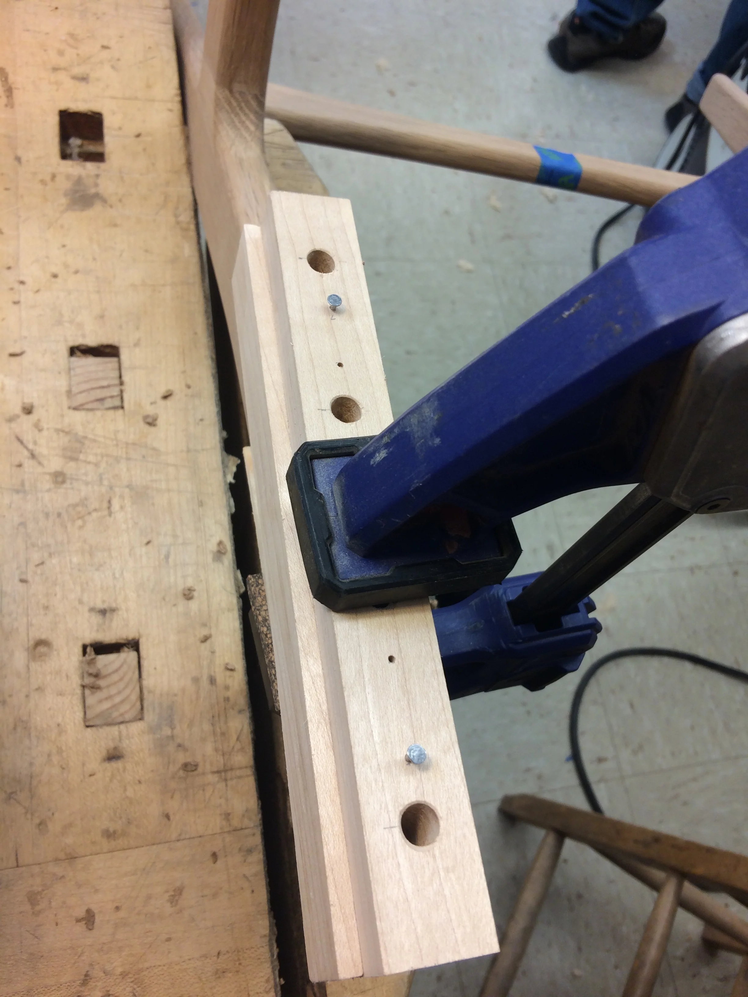 A custom jig ensures the holes are drilled in the correct orientation relative to the joint.